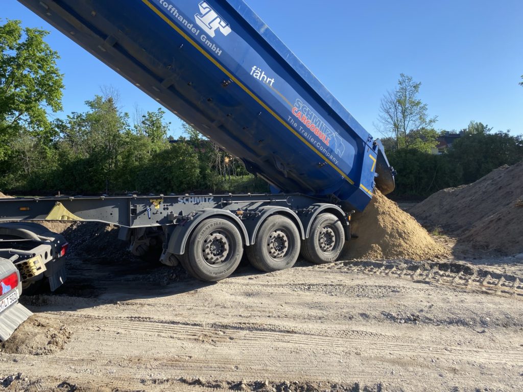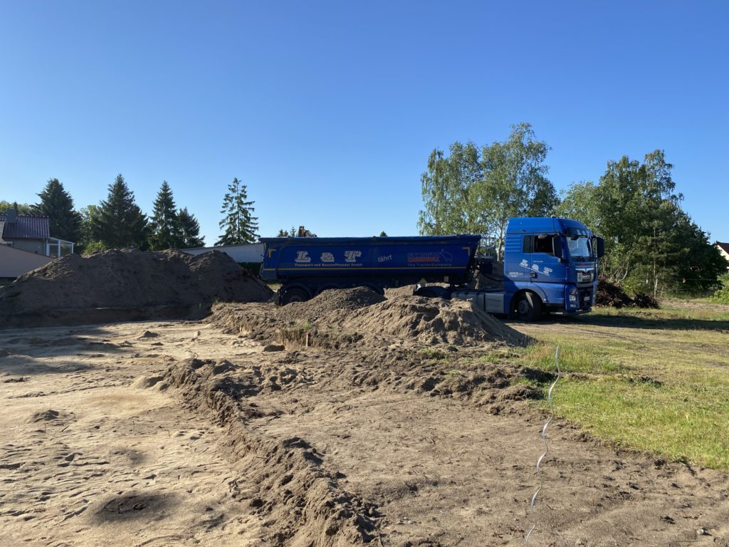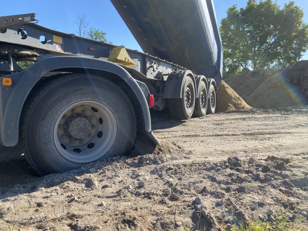 Der erste LKW hat sich wieder eingegraben, aber dann ging alles glatt. Morgen geht es mit noch mehr Sand weiter. Aber nur wenn jemand den Bagger auftankt…