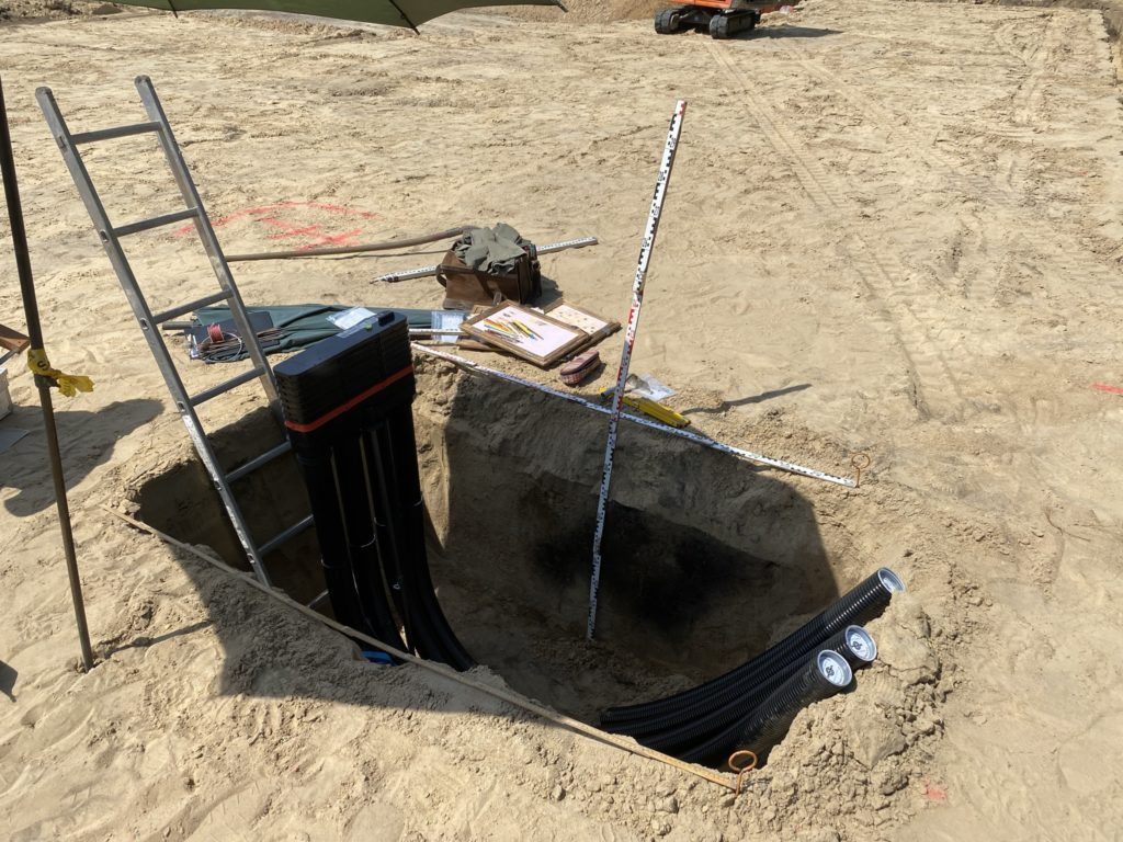 Heute wurde ein Großteil der Gräben für die Frostschürze ausgehoben, natürlich mit archäoligischer Begleitung. Dabei wurden einige der Feuerstellen durch den Bagger angeschnitten, um dann archäologisch dokumentiert zu werden. In einer der größeren Feuerstellen wurden viele Teile eines Feuersteins und auch verkohlte Holzreste gefunden. Begeisterung beim Archäologen. Aktuell ist aber alles im Zeitplan.