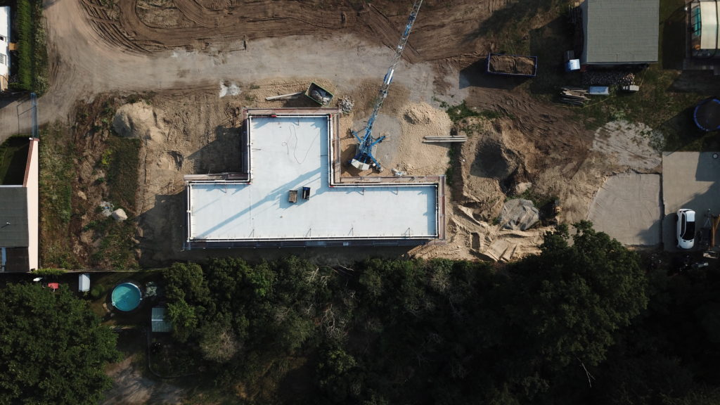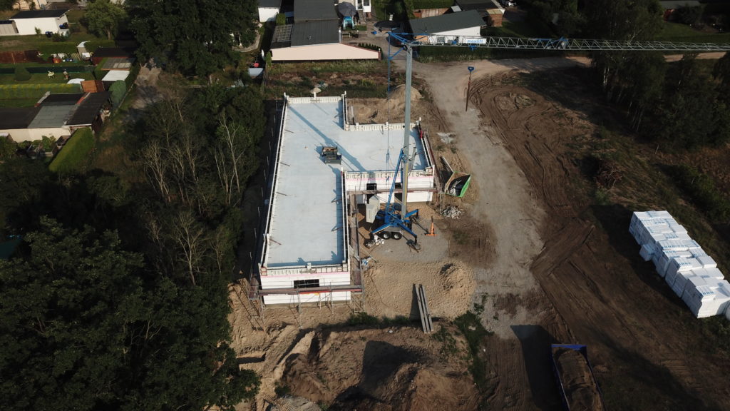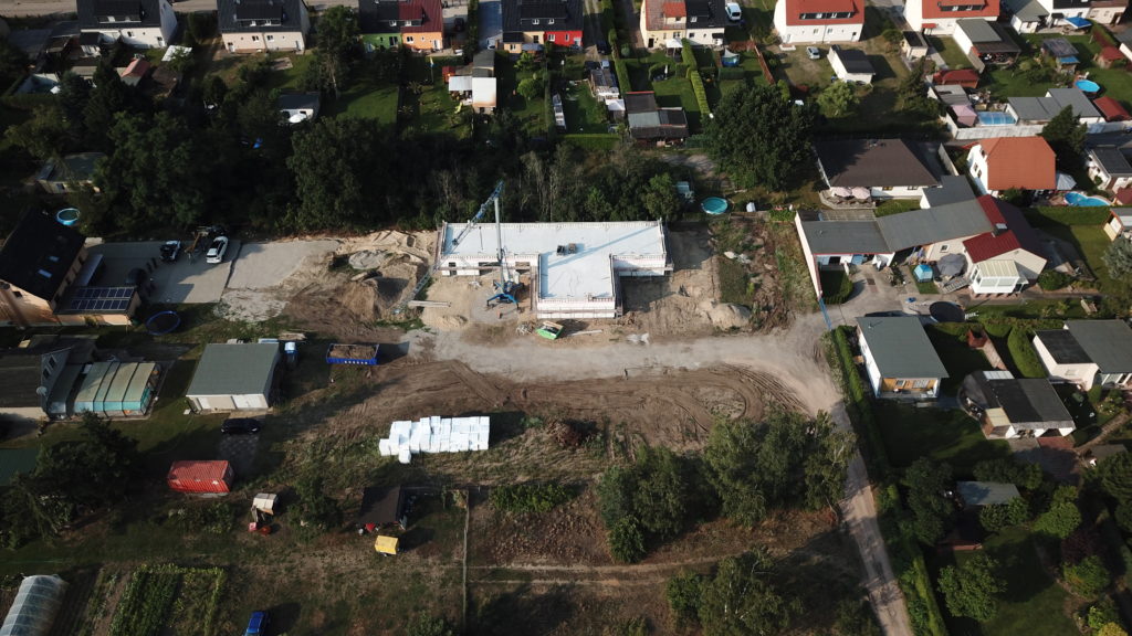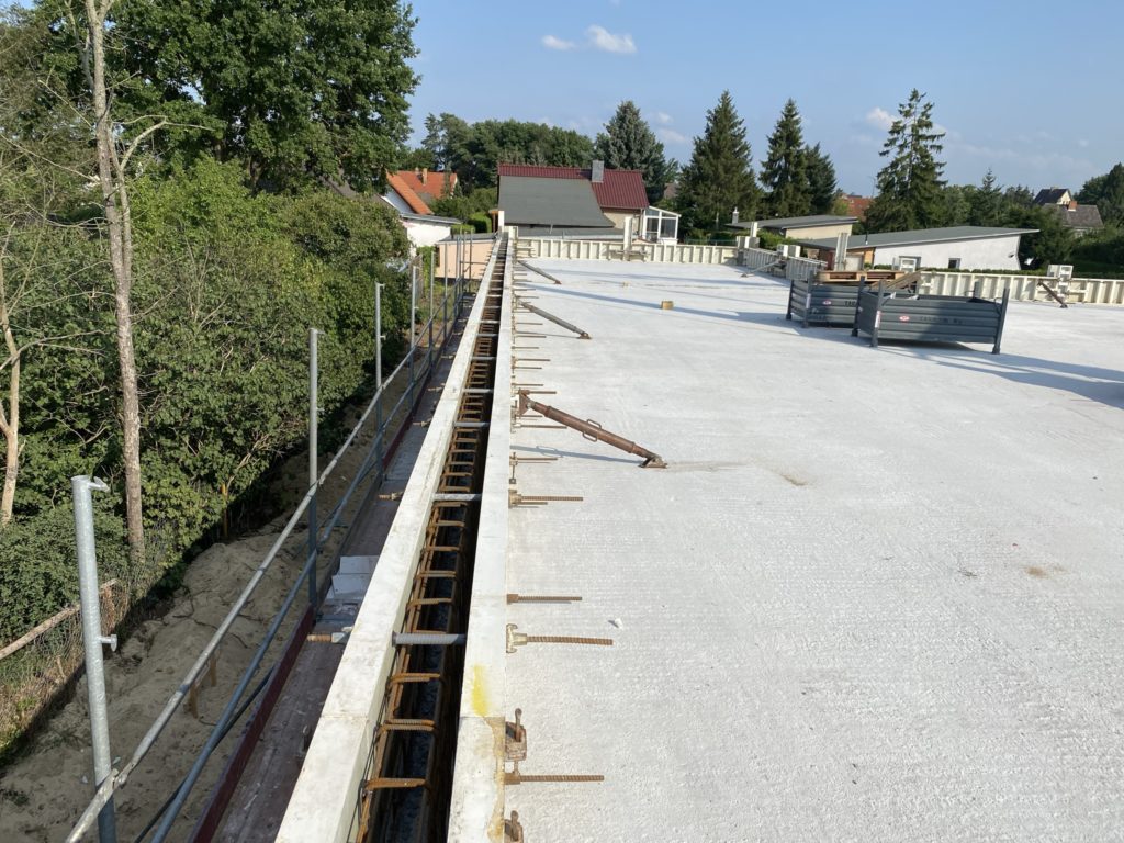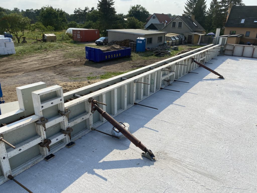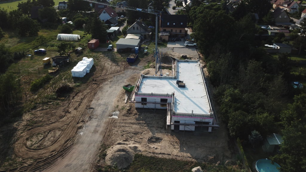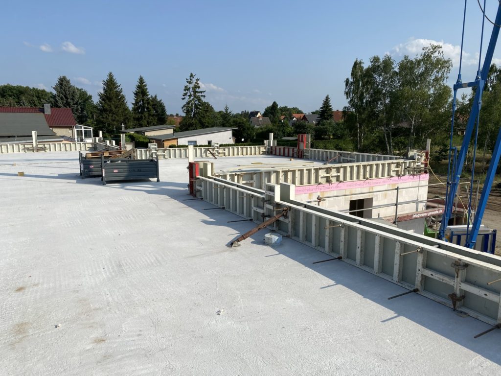 Tag 59 – Attikaschalung fertig und neue Luftbilder 24. Juli 2021 von ah Heute wurde die Schalung der Attika fertiggestellt und kann dann am Montag gegossen werden. Außerdem verschwindet jetzt auch endlich der Haufen Erde der mit Müll durchsetzt ist.