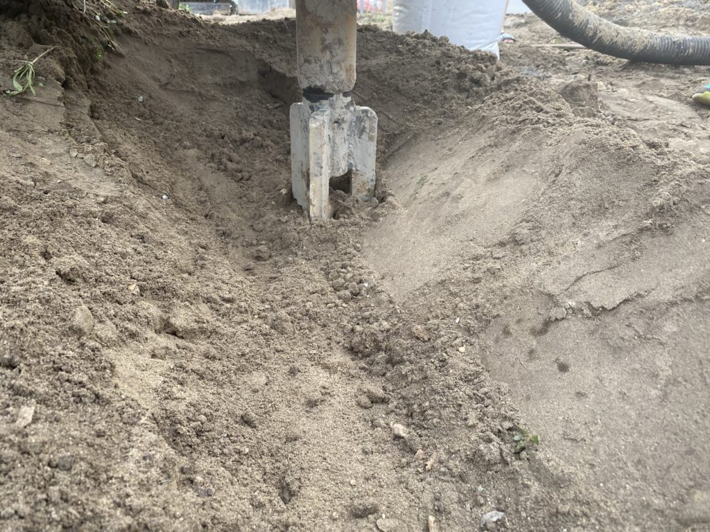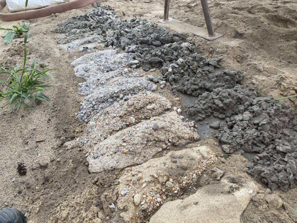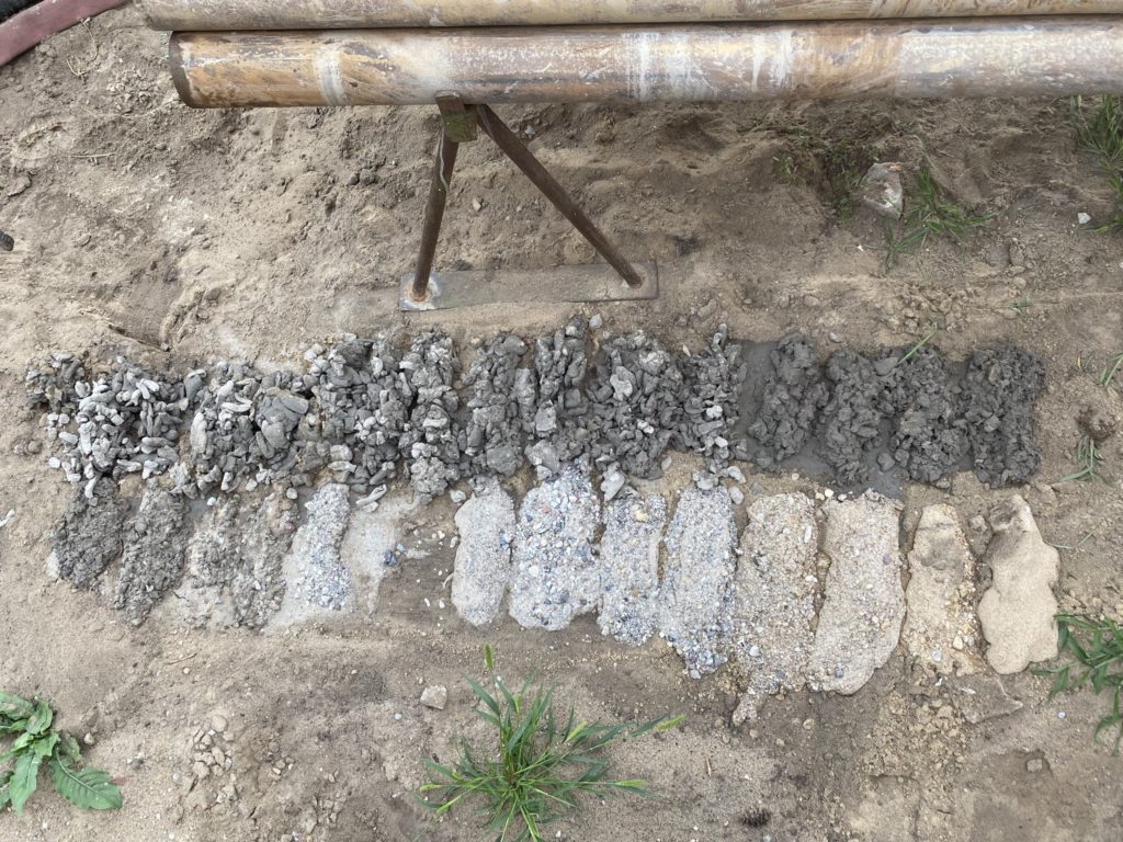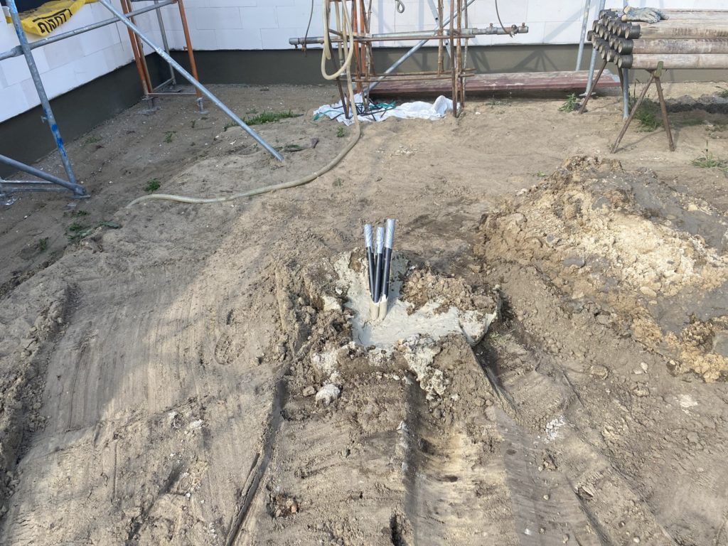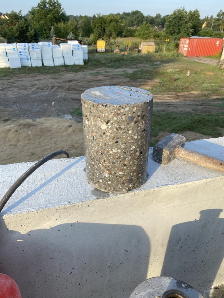 Heute wurden die Bohrungen für die Dachentwässerung gebohrt. 10x 150mm durch den Stahlbeton. Die erste von 3 Tiefenbohrungen für die Erdwärme war auch erfolgreich. Es wurde 62m tief gebohrt und dann die 4 Leitungen bei 60m Tiefe eingebaut und verpresst. Die Bodenschichten hier sind optimal für Erdwärme.