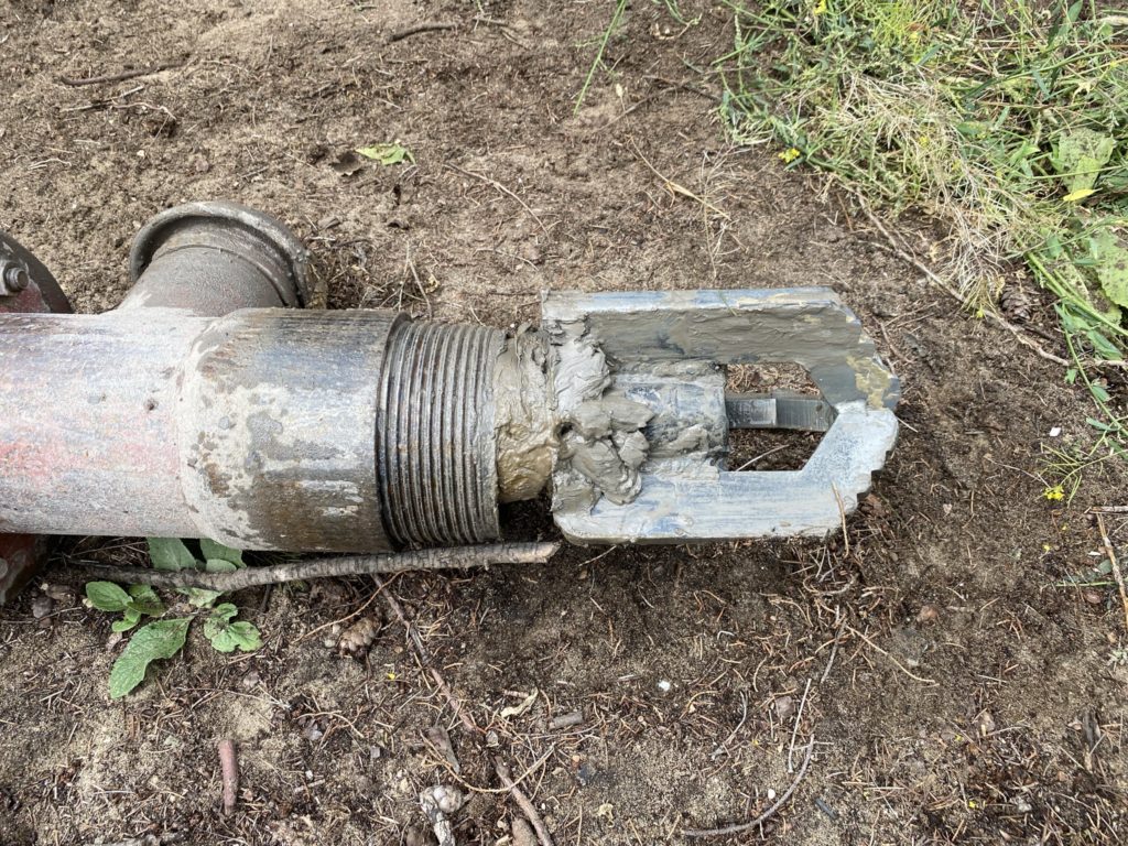 Heute wurde die letzte Erdwärmebohrung durchgeführt. Wieder absolut problemlos. Erstaunlich ist, wie in den wasserführenden Schichten durch die Bohrzusätze eine Art Außenmantel entsteht, der selbst in der ca. 12-13m hohen Grundwasserschicht so stabil ist, dass die Sonde eingeführt und verpresst werden kann.