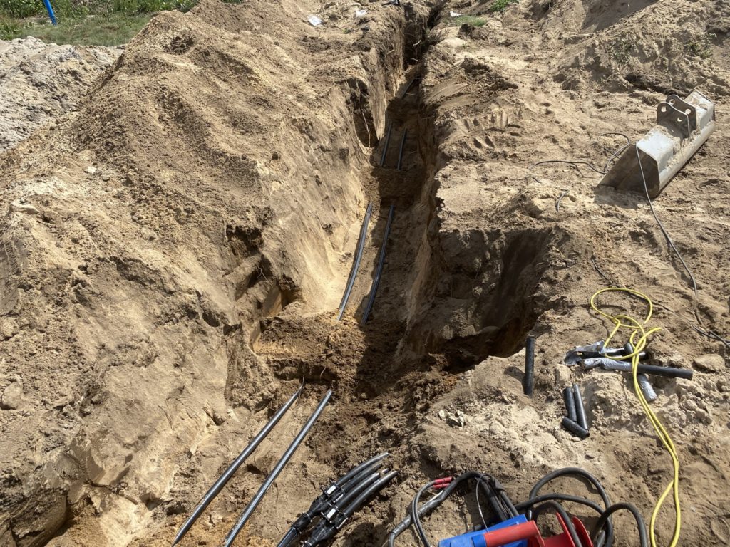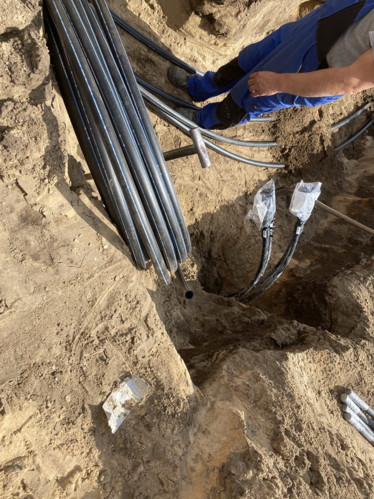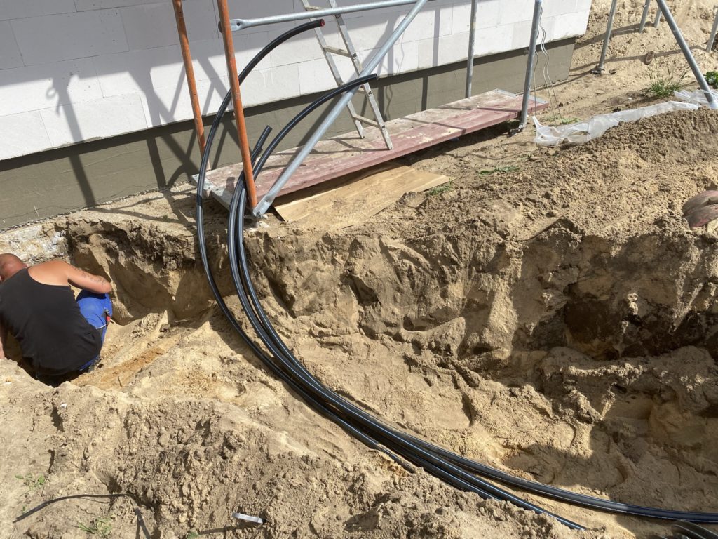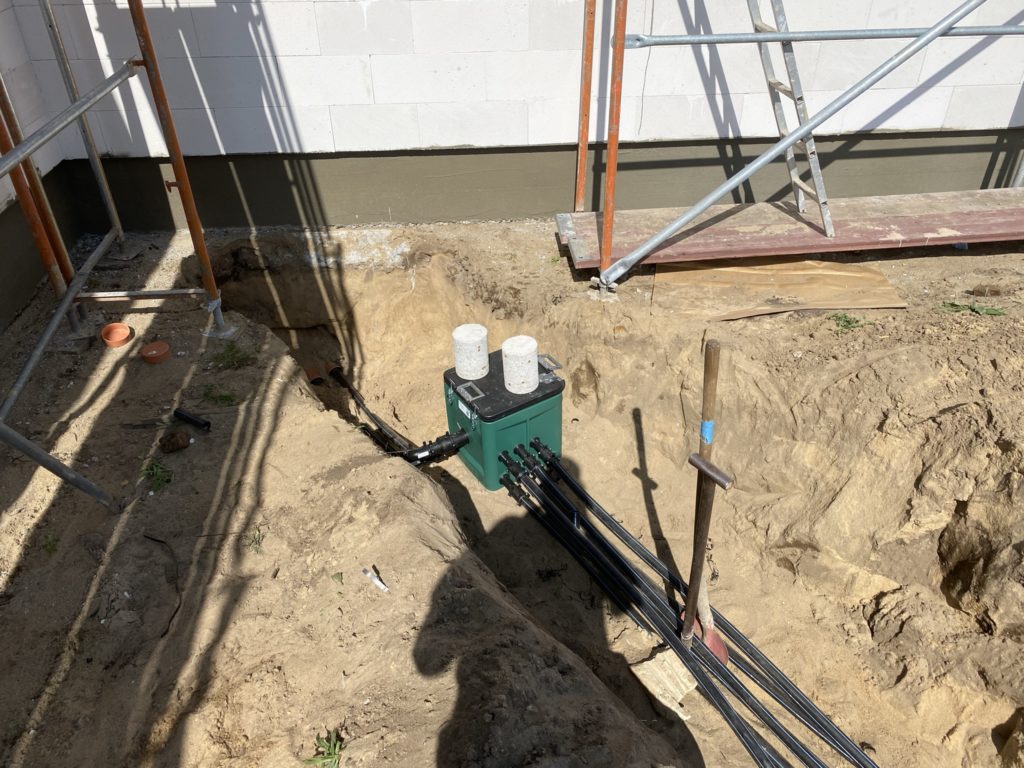 Heute wurde die Dampfsperre auf dem Dach abgeschlossen. Die Dachfläche und die Attika sind jetzt dicht. Die Leitungen für die Erdwärme sind komplett angeschlossen und abgedrückt. Auch alles dicht.