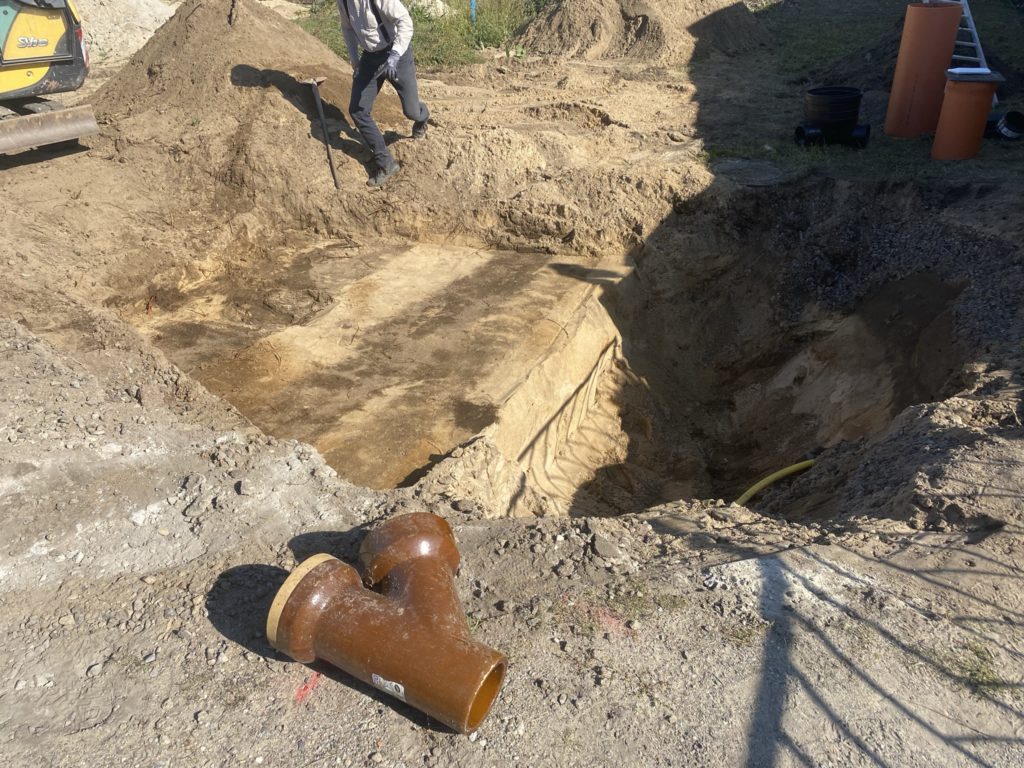 Heute wurde der Einbau des Abwasseranschlusses von Seiten der Brawag vorbereitet. Da dabei ja wieder unser Lieblingsarchäologe dabei sein durfte und dieser natürlich wieder etwas gefunden hat, konnten die Arbeiten heute nicht fertiggestellt werden. Spannenderweise hat die Brawag den Übergabepunkt an eine andere Stelle gesetzt, als es eigentlich abgestimmt war. Schon spannend wie die Brawag so etwas ohne Rücksprache entscheidet – ist ja schließlich nur auf meinem Grundstück und die Brawag hat nicht mal Leitungsrechte. Das wird sicher noch spannend.