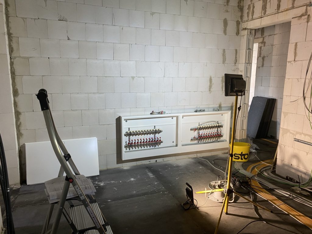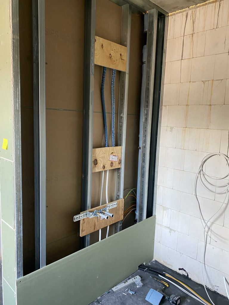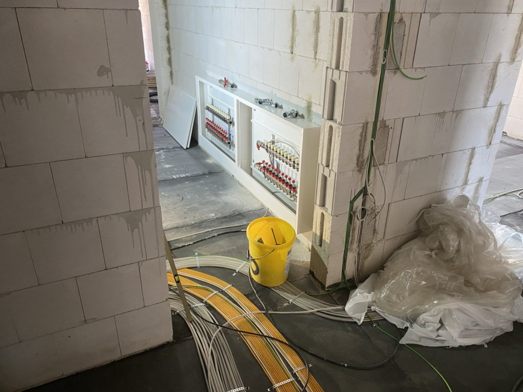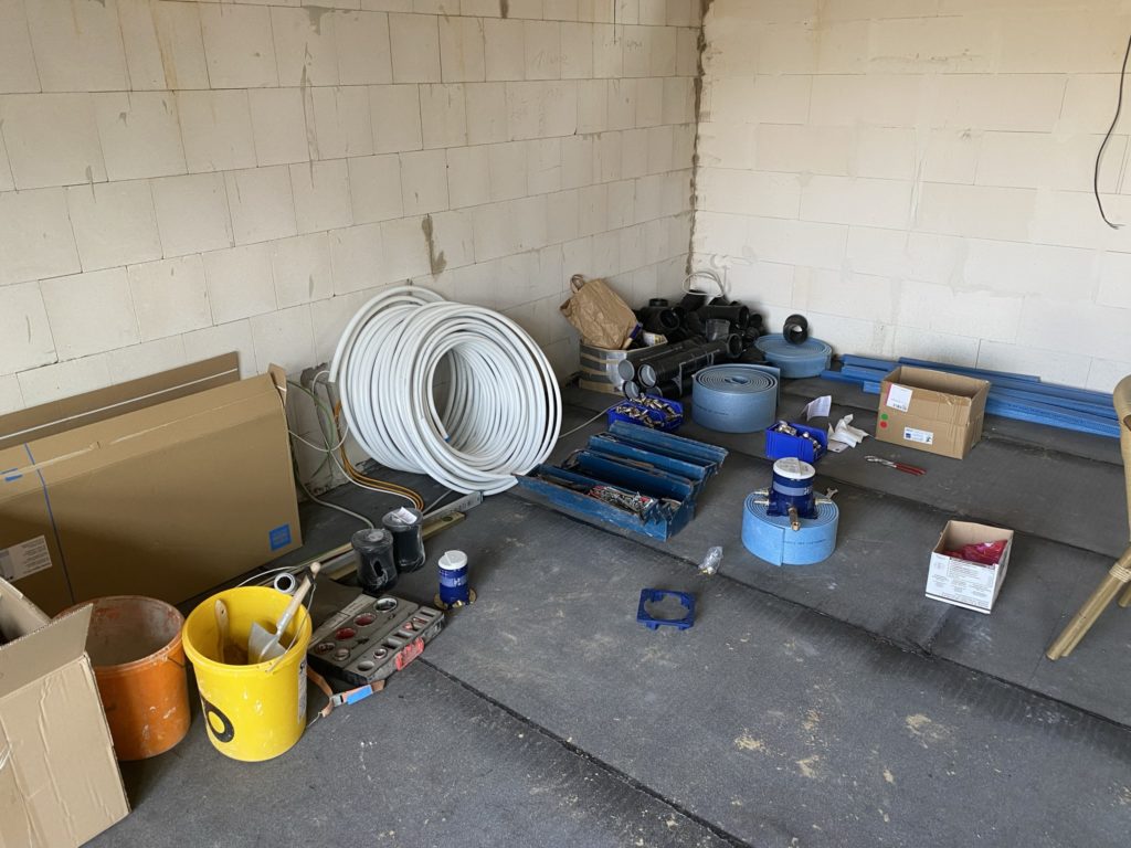 Tag 112 – Beginn Installation Heizung/Sanitär 15. September 202114. September 2021 von ah Heute begannen die Installationsarbeiten für Heizung, Wasser und Sanitär. Das Kinder- und das Arbeitszimmer wurden bereits gedämmt. In den Bädern die ersten Unterputzelemente verbaut. Im Technikraum wurden zwei riesige Heizkreisverteiler montiert.