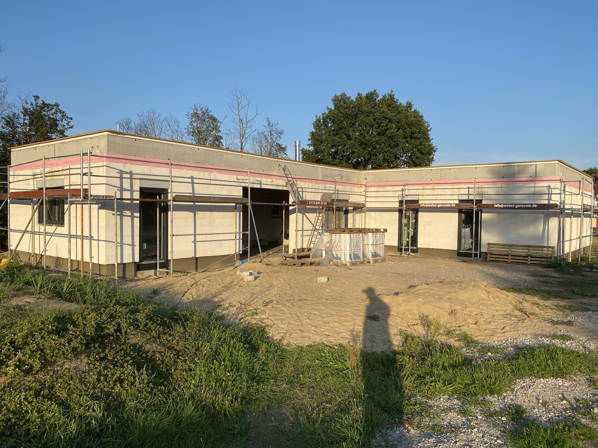 Heute wurden die Fenster, Terrassentüren und die Garagentür geliefert und fast alles eingebaut. Die Haustür hat leider 2 Wochen Verzögerung – hoffen wir das es bei 2 Wochen bleibt, dann ist der Zeitplan noch zu schaffen. Gleichzeitig wurde die Dämmung und die Gefälledämmung auf dem Garagendach eingebaut und abgedichtet. Mit den Terrassentüren hatten die Monteure ordentlich zu kämpfen, da diese sehr schwer sind. Auf dem einen Foto sieht man auch warum. Es sind faktisch 4 Scheiben, die äußeren beiden mit einer Sicherheitsfolie verbunden als A3 Sicherheitsverglasung VSG 9mm und die Beschläge mit Sicherheitsklasse RC2. Es ist vermutlich leichter durch die Wand zu kommen als durch diese Fenster und Türen.