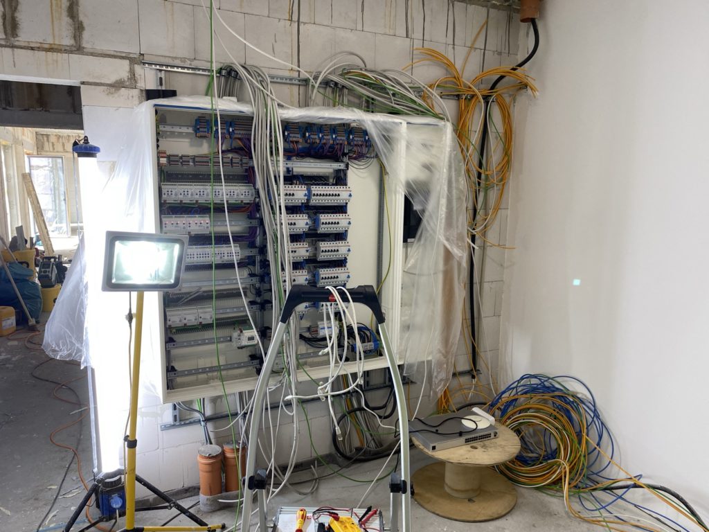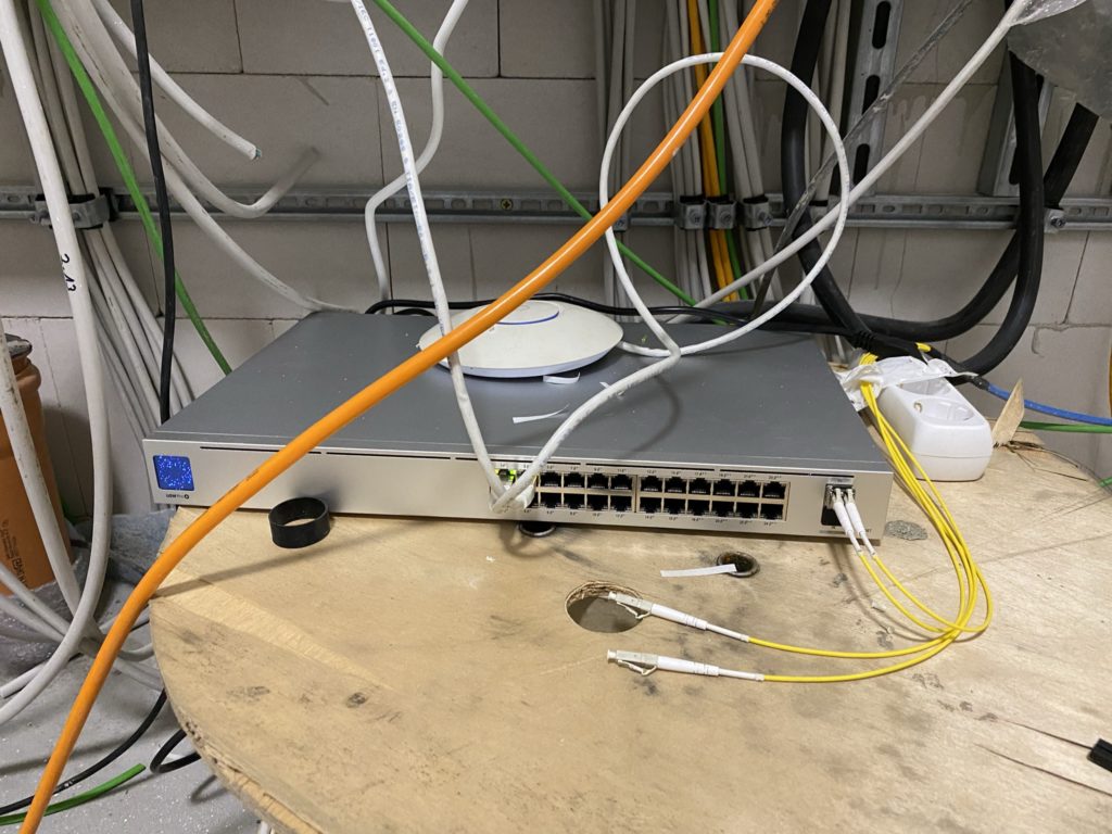 Die Glasfaserverbindung zum alten Haus habe ich heute in Betrieb genommen und getestet. 10 Gbit sollten eine Weile reichen. Das WLAN ist jetzt auch provisiorisch installiert. Im Technikraum wurde die erste endgültige Leuchte installiert, inkl. Präsenzmelder. Dazu musste natürlich das KNX-System in Betrieb genommen werden. Im Technikraum und der Garage kann man jetzt das Licht schon per Handy ein/ausschalten und im Technikraum geht es alleine an und aus.
